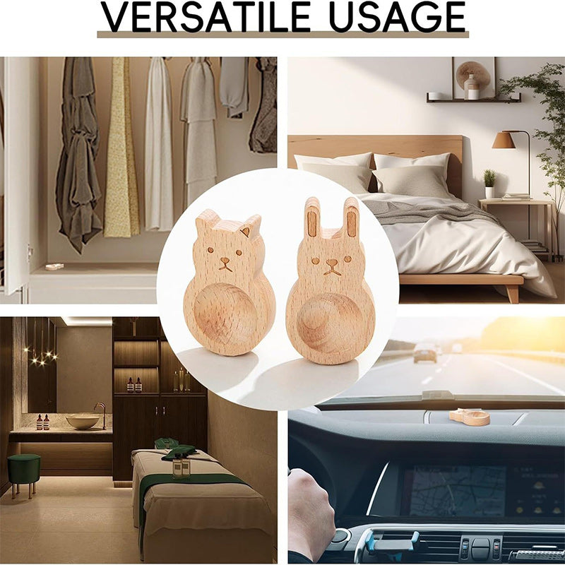 Meet the adorable wood diffuser shaped like a cat or rabbit, designed to absorb and gently release your favorite scents. Simply spray it with essential oils or perfume, and let the natural wood disperse the aroma throughout your space. Perfect for adding a cozy touch while keeping the air fresh and inviting.