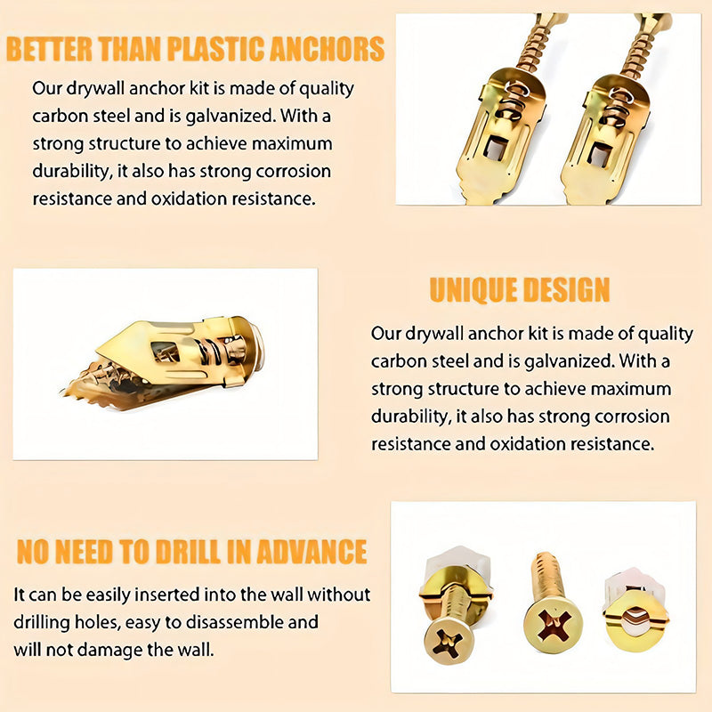 Drywall Expansion Anchors + High Strength Zinc Screws Kit (Pack of 100)