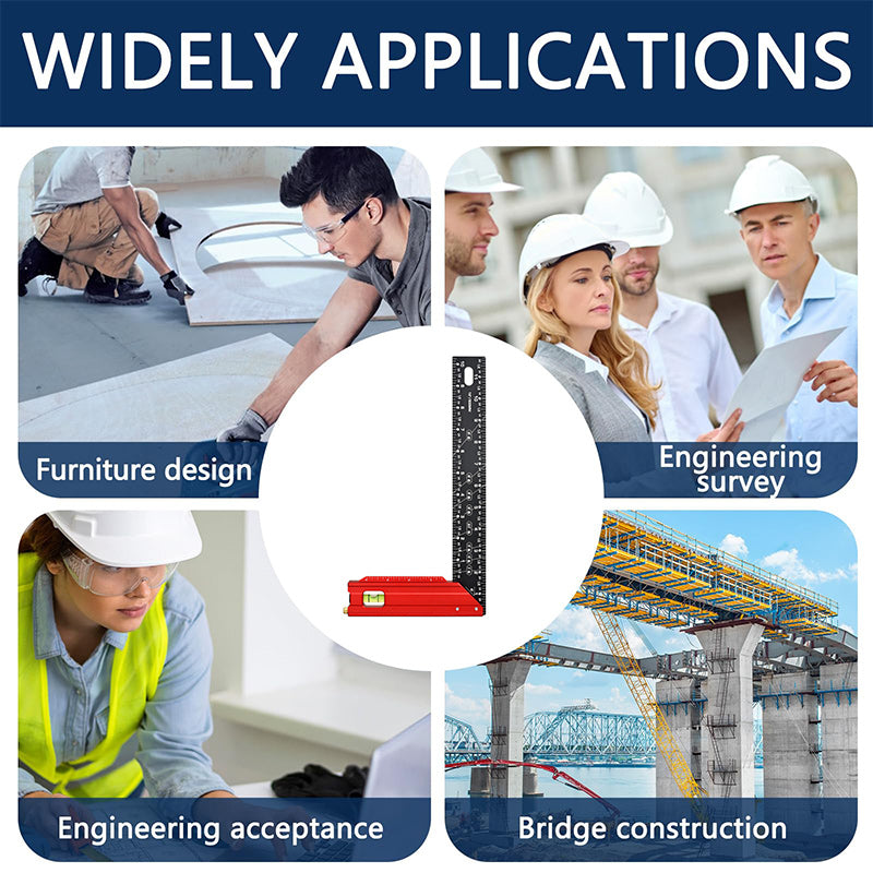 • Aluminum framing square: The aluminum body is rust-proof and lightweight. This Carpenter Square has permanent deep stampings are durable.