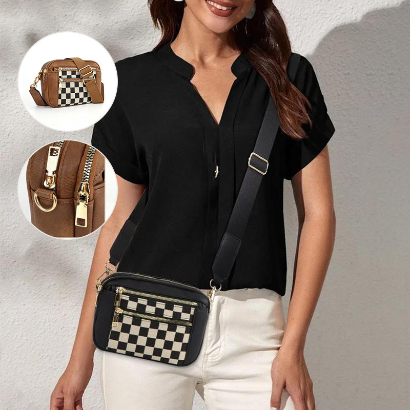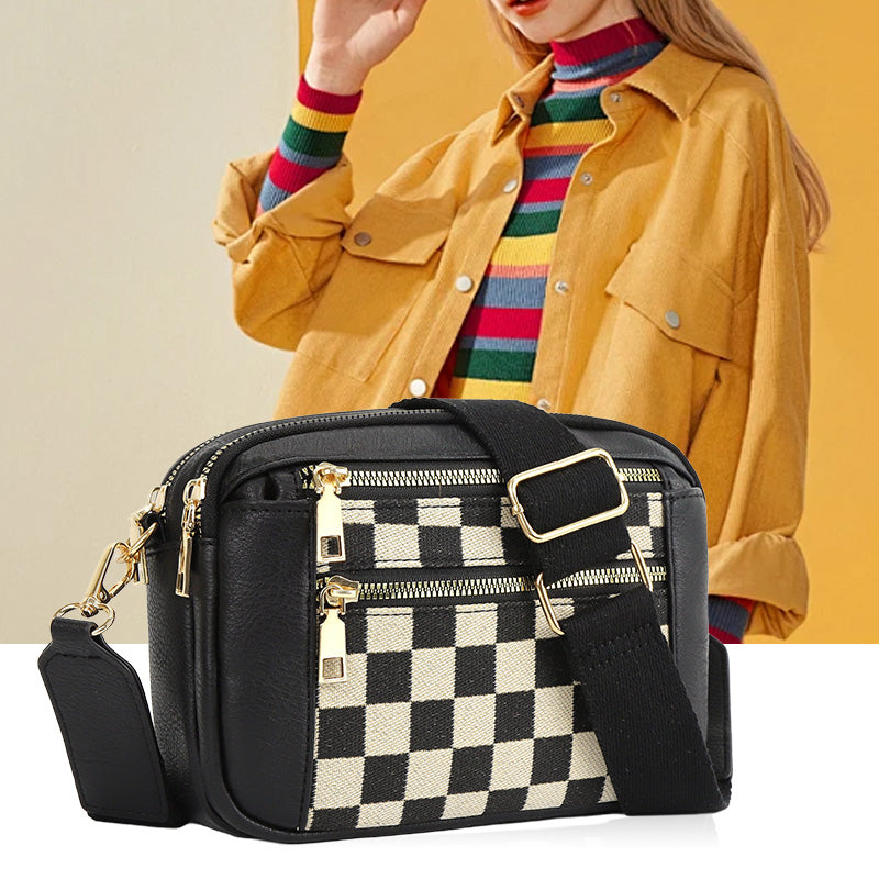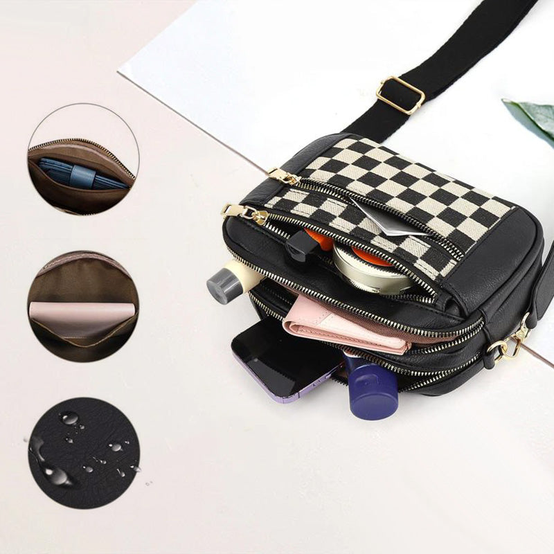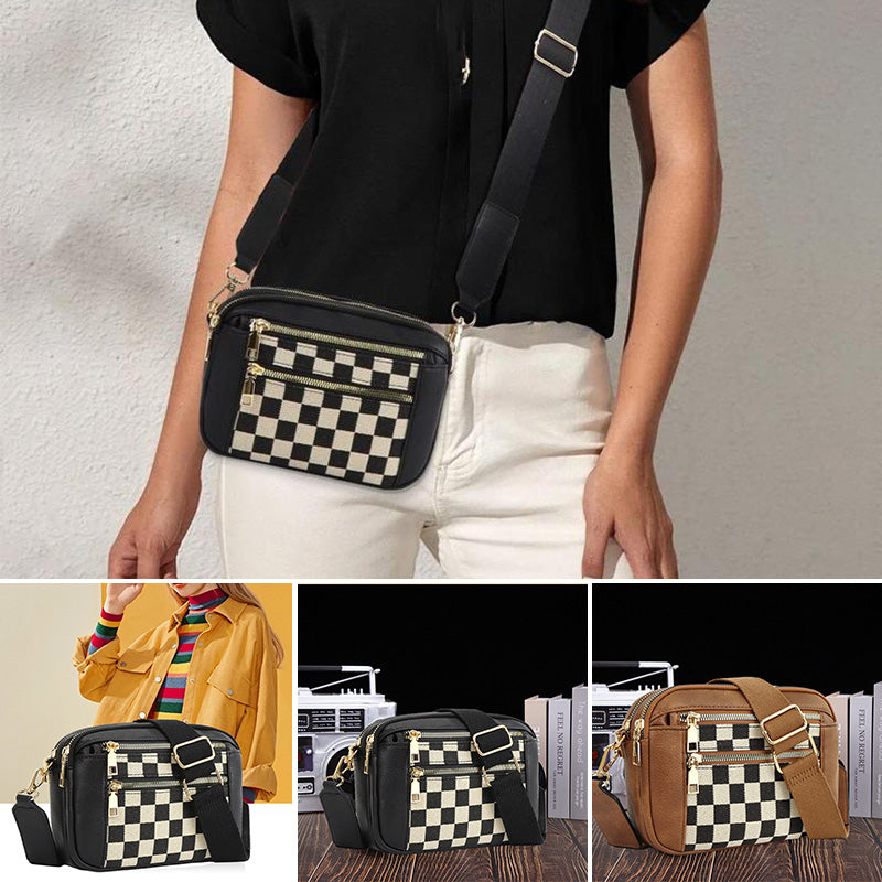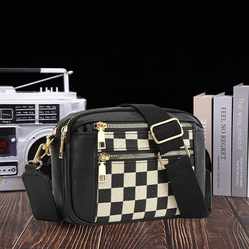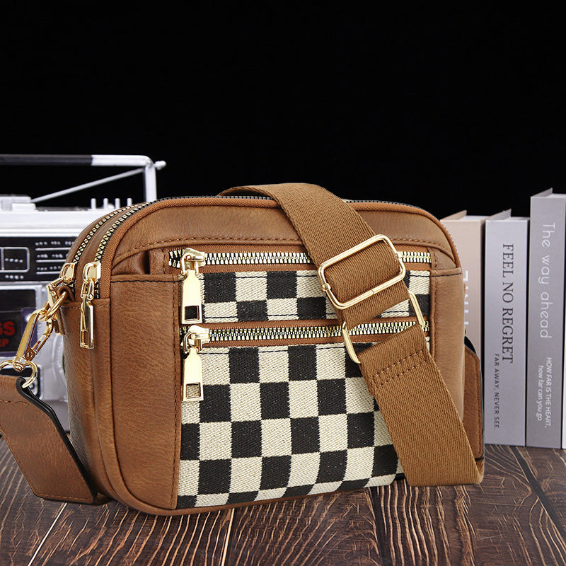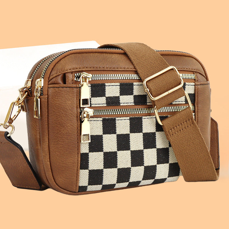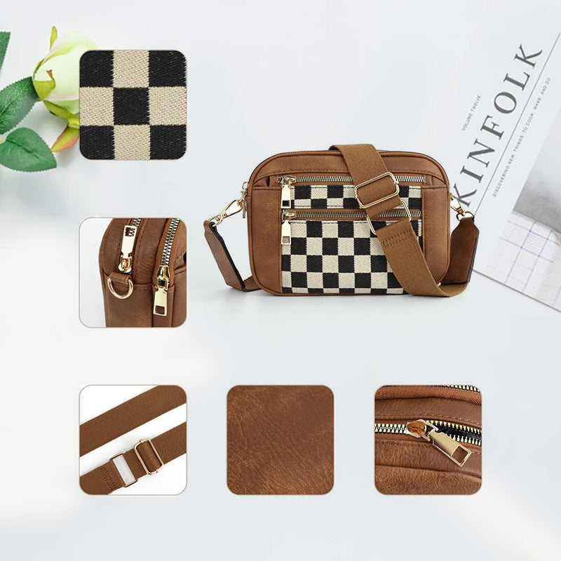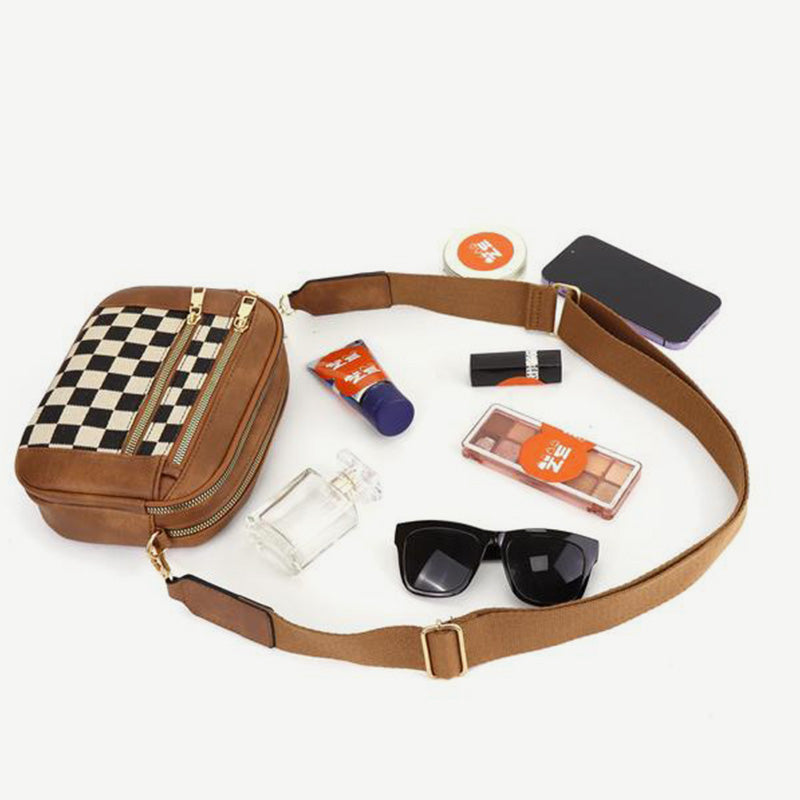 Women's Fashionable Colorblock Plaid Pattern Crossbody Bag