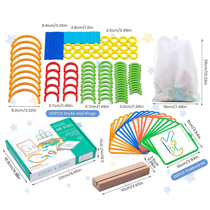 • 🎨 Endless Creative Possibilities: Build letters, numbers, animals, or abstract art using colorful sticks and rings.
