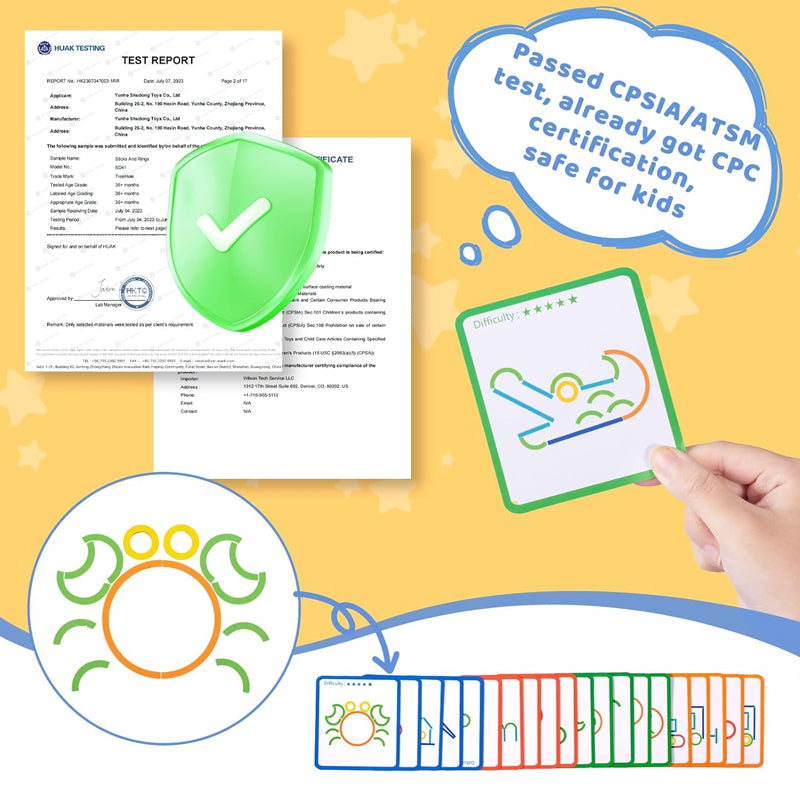 With vibrant sticks, rings, and pattern cards, children can create letters, numbers, shapes, and imaginative designs — all while improving fine motor skills, logical thinking, and hand-eye coordination.
