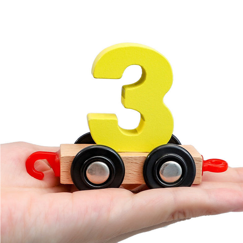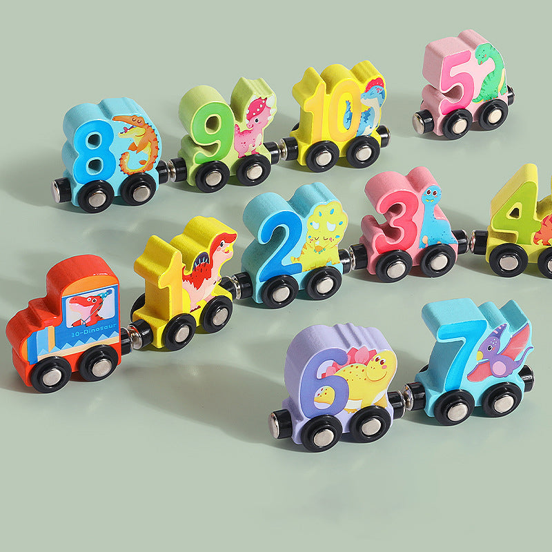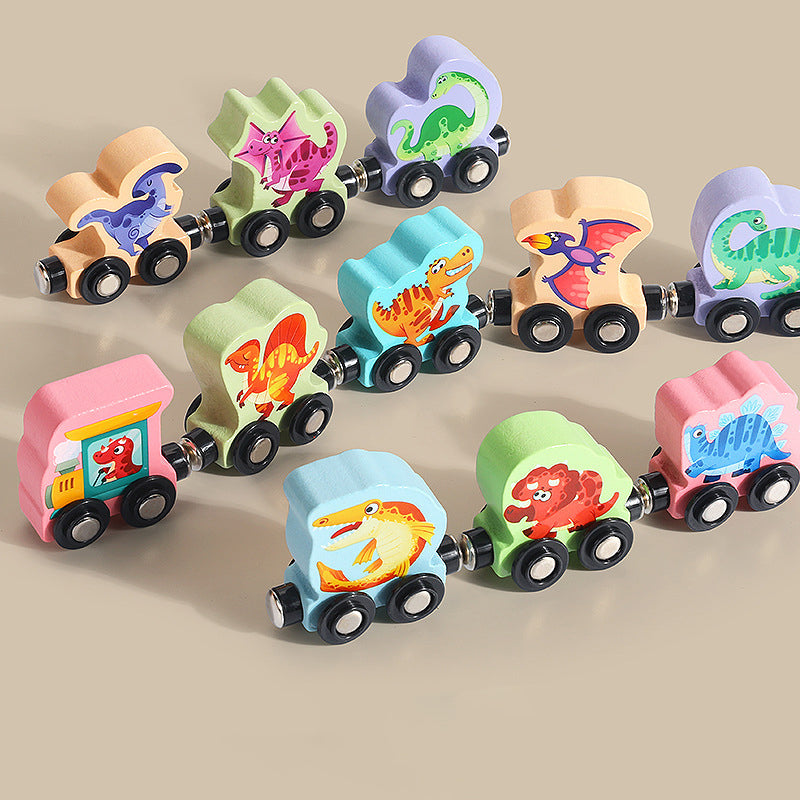 Digitalt magnetiskt tågpussel med leksaksbil i trä