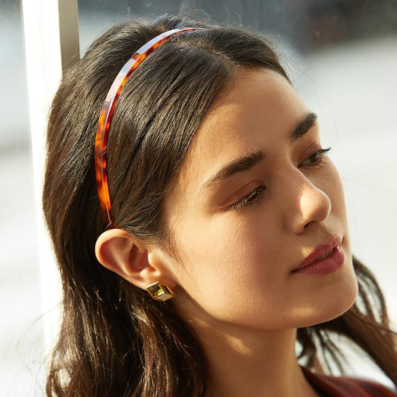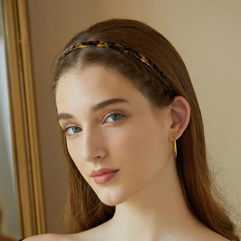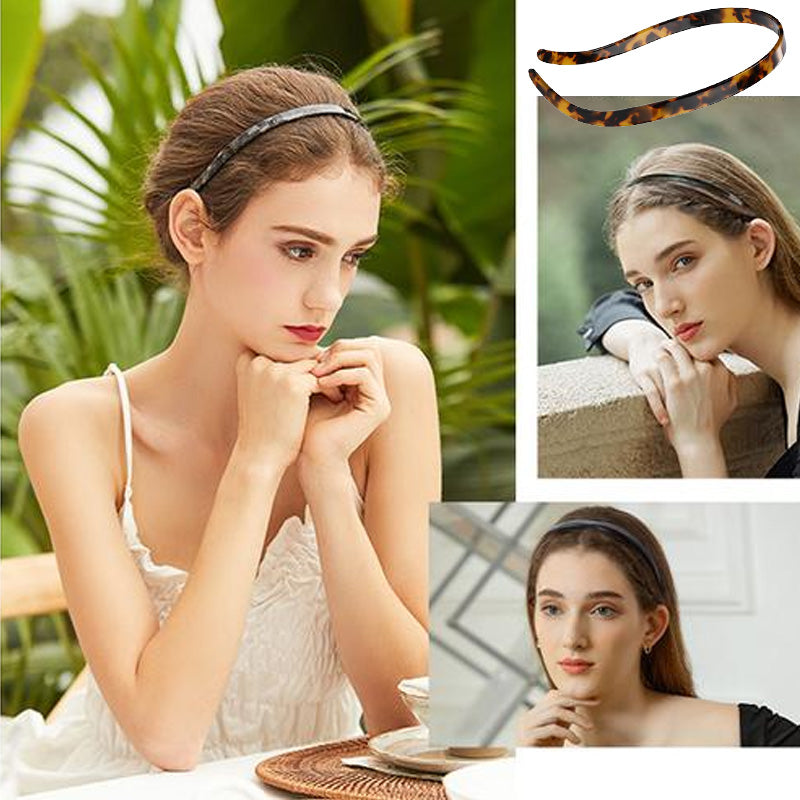 • Tillverkad av acetat, ett naturmaterial som framställs av bomullsblommor och trämassa och som i princip är hårvänligt. Acetatmaterialet har en stark seghet. Pannbandet justerar sin storlek för att passa olika huvudformer efter användning.