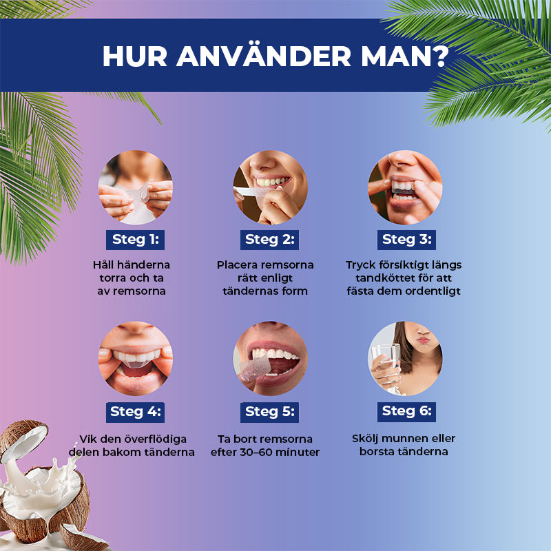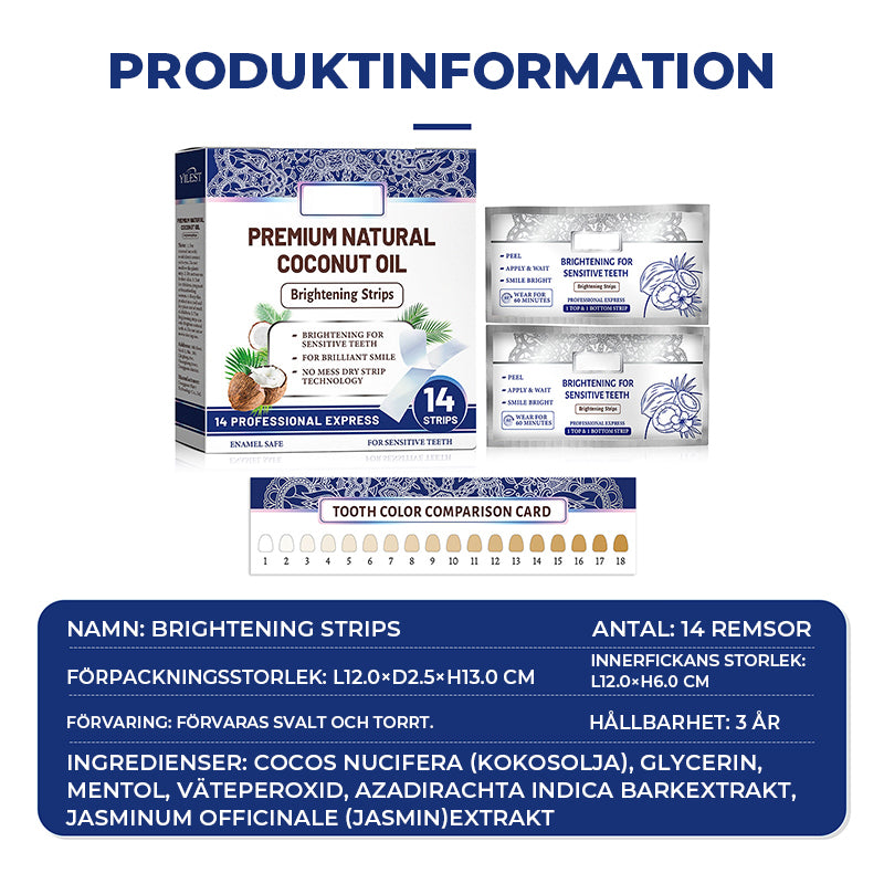 {"id":8894819860729,"title":"Kokosmynta Vitgörande Strips","handle":"kokosmynta-vitgorande-strips","description":"\u003cp style=\"text-align: center;\"\u003e\u003cspan style=\"color: rgb(49, 148, 181);\"\u003e\u003cstrong\u003eETT LJUSARE LEENDE, PÅ DEN SKÖNA SÄTTEN 🌿✨\u003c\/strong\u003e\u003c\/span\u003e\u003c\/p\u003e\n\u003cp style=\"text-align: center;\" data-start=\"252\" data-end=\"449\"\u003e\u003cspan style=\"vertical-align: inherit;\"\u003e\u003cspan style=\"vertical-align: inherit;\"\u003eSäg adjö till starka kemikalier och hej till naturlig vitgörande effekt! Dessa kokosmyntstrips lyfter varsamt fläckar samtidigt som de friskar upp din andedräkt – perfekt för känsliga leenden och vardagligt självförtroende.\u003c\/span\u003e\u003c\/span\u003e\u003c\/p\u003e\n\u003cp style=\"text-align: center;\" data-start=\"252\" data-end=\"449\"\u003e\u003cimg alt=\"\" src=\"https:\/\/cdn.shopify.com\/s\/files\/1\/0662\/1718\/1433\/files\/9_3977691d-7008-4751-b710-d3cbef14c4fd.jpg?v=1753346864\"\u003e\u003c\/p\u003e\n\u003ch3 data-start=\"456\" data-end=\"478\"\u003e\u003cspan style=\"color: #48acaf;\"\u003e\u003cspan style=\"vertical-align: inherit;\"\u003e\u003cspan style=\"vertical-align: inherit;\"\u003eKUNDRECENSIONER\u003c\/span\u003e\u003c\/span\u003e\u003c\/span\u003e\u003c\/h3\u003e\n\u003cp style=\"text-align: center;\" data-start=\"480\" data-end=\"679\"\u003e\u003cspan style=\"vertical-align: inherit;\"\u003e\u003cspan style=\"vertical-align: inherit;\"\u003e⭐⭐⭐⭐⭐⭐ \u003c\/span\u003e\u003c\/span\u003e\u003cstrong data-start=\"486\" data-end=\"513\"\u003e\u003cspan style=\"vertical-align: inherit;\"\u003e\u003cspan style=\"vertical-align: inherit;\"\u003eÄNTLIGEN – INGEN KÄNSLIGHET!\u003c\/span\u003e\u003c\/span\u003e\u003c\/strong\u003e\u003cbr data-start=\"513\" data-end=\"516\"\u003e\u003cspan style=\"vertical-align: inherit;\"\u003e\u003cspan style=\"vertical-align: inherit;\"\u003e Jag har provat andra blekningsprodukter och har alltid fått skarpa smärtor. Dessa kokosoljeremsor är så skonsamma och gjorde ändå mina tänder synbart ljusare på bara några dagar!\u003c\/span\u003e\u003c\/span\u003e\u003c\/p\u003e\n\u003cp style=\"text-align: center;\" data-start=\"681\" data-end=\"863\"\u003e\u003cspan style=\"vertical-align: inherit;\"\u003e\u003cspan style=\"vertical-align: inherit;\"\u003e⭐⭐⭐⭐⭐ \u003c\/span\u003e\u003c\/span\u003e\u003cstrong data-start=\"687\" data-end=\"718\"\u003e\u003cspan style=\"vertical-align: inherit;\"\u003e\u003cspan style=\"vertical-align: inherit;\"\u003eSMAKAR FRÄSCHT OCH VERKAR SNABBT\u003c\/span\u003e\u003c\/span\u003e\u003c\/strong\u003e\u003cbr data-start=\"718\" data-end=\"721\"\u003e\u003cspan style=\"vertical-align: inherit;\"\u003e\u003cspan style=\"vertical-align: inherit;\"\u003e Älskar den lätta mintsmaken! Remsorna sitter kvar även när jag pratar eller dricker vatten. Mina tänder såg märkbart vitare ut på dag tre – superimponerad.\u003c\/span\u003e\u003c\/span\u003e\u003c\/p\u003e\n\u003cp style=\"text-align: center;\" data-start=\"865\" data-end=\"1058\"\u003e\u003cspan style=\"vertical-align: inherit;\"\u003e\u003cspan style=\"vertical-align: inherit;\"\u003e⭐⭐⭐⭐⭐ \u003c\/span\u003e\u003c\/span\u003e\u003cstrong data-start=\"871\" data-end=\"904\"\u003e\u003cspan style=\"vertical-align: inherit;\"\u003e\u003cspan style=\"vertical-align: inherit;\"\u003eLÄTT ATT ANVÄNDA, KLADDFRI DESIGN\u003c\/span\u003e\u003c\/span\u003e\u003c\/strong\u003e\u003cbr data-start=\"904\" data-end=\"907\"\u003e\u003cspan style=\"vertical-align: inherit;\"\u003e\u003cspan style=\"vertical-align: inherit;\"\u003e Inget kladd, inget glidande! Designen med torra remsor är revolutionerande. Jag kan bära dem när jag jobbar, och de rör sig inte. Dessutom är de resevänliga.\u003c\/span\u003e\u003c\/span\u003e\u003c\/p\u003e\n\u003cp style=\"text-align: center;\" data-start=\"865\" data-end=\"1058\"\u003e\u003cimg src=\"https:\/\/cdn.shopify.com\/s\/files\/1\/0662\/1718\/1433\/files\/2_db8e4524-431c-4146-b789-9810543b7de2.jpg?v=1751264553\" alt=\"\"\u003e\u003c\/p\u003e\n\u003ch3 data-start=\"1065\" data-end=\"1082\"\u003e\u003cspan style=\"color: #48acaf;\"\u003e\u003cspan style=\"vertical-align: inherit;\"\u003e\u003cspan style=\"vertical-align: inherit;\"\u003eBESKRIVNING\u003c\/span\u003e\u003c\/span\u003e\u003c\/span\u003e\u003c\/h3\u003e\n\u003cul\u003e\n\u003cli data-start=\"1084\" data-end=\"1339\"\u003e\n\u003cspan style=\"color: #e67e23;\"\u003e\u003cspan style=\"vertical-align: inherit;\"\u003e\u003cspan style=\"vertical-align: inherit;\"\u003e🦷 \u003c\/span\u003e\u003c\/span\u003e\u003cstrong data-start=\"1087\" data-end=\"1125\"\u003e\u003cspan style=\"vertical-align: inherit;\"\u003e\u003cspan style=\"vertical-align: inherit;\"\u003eVIKTAR SKONSALT FÖR KÄNSLIGA TÄNDER\u003c\/span\u003e\u003c\/span\u003e\u003c\/strong\u003e\u003c\/span\u003e\u003cbr data-start=\"1125\" data-end=\"1128\"\u003e\u003cspan style=\"vertical-align: inherit;\"\u003e\u003cspan style=\"vertical-align: inherit;\"\u003e Dessa remsor är framtagna med naturlig kokosolja och växtextrakt och ger en lugnande vitgörande upplevelse. De är perfekta för känsliga tänder och hjälper till att minska obehag som ofta orsakas av produkter med högt peroxidinnehåll.\u003c\/span\u003e\u003c\/span\u003e\n\u003c\/li\u003e\n\u003c\/ul\u003e\n\u003cp\u003e\u003cimg alt=\"\" src=\"https:\/\/cdn.shopify.com\/s\/files\/1\/0662\/1718\/1433\/files\/4_87944c8d-d261-411e-b2df-3becabd44083.jpg?v=1753346864\"\u003e\u003c\/p\u003e\n\u003cul\u003e\n\u003cli data-start=\"1341\" data-end=\"1550\"\u003e\n\u003cspan style=\"color: #e67e23;\"\u003e\u003cspan style=\"vertical-align: inherit;\"\u003e\u003cspan style=\"vertical-align: inherit;\"\u003e🌿 \u003c\/span\u003e\u003c\/span\u003e\u003cstrong data-start=\"1344\" data-end=\"1381\"\u003e\u003cspan style=\"vertical-align: inherit;\"\u003e\u003cspan style=\"vertica