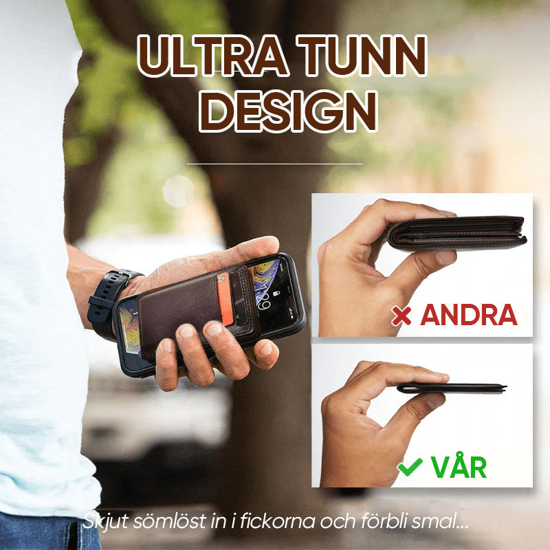 • Ultratunn design: Flip-plånboken i läder är speciellt designad för att vara mer strömlinjeformad, kompakt och slutligen tunn. Den låter dig bekvämt bära flera kort och kontanter, men ändå sömlöst glida in i dina fram- eller bakfickor och förbli smal.