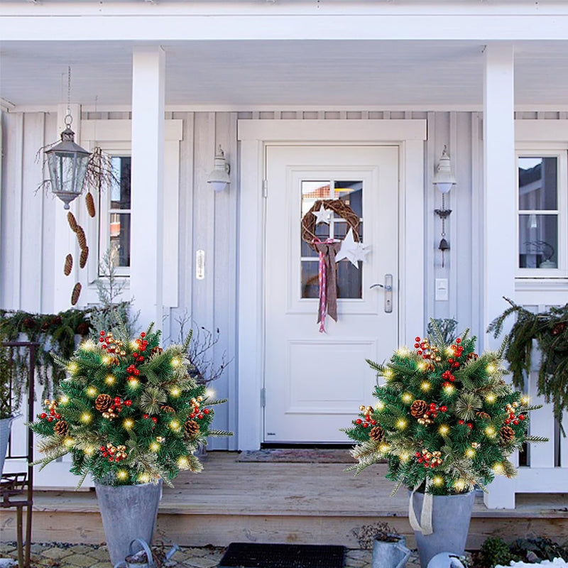 Pre-Lit Artificial Christmas Tree Urn Filler with Lights